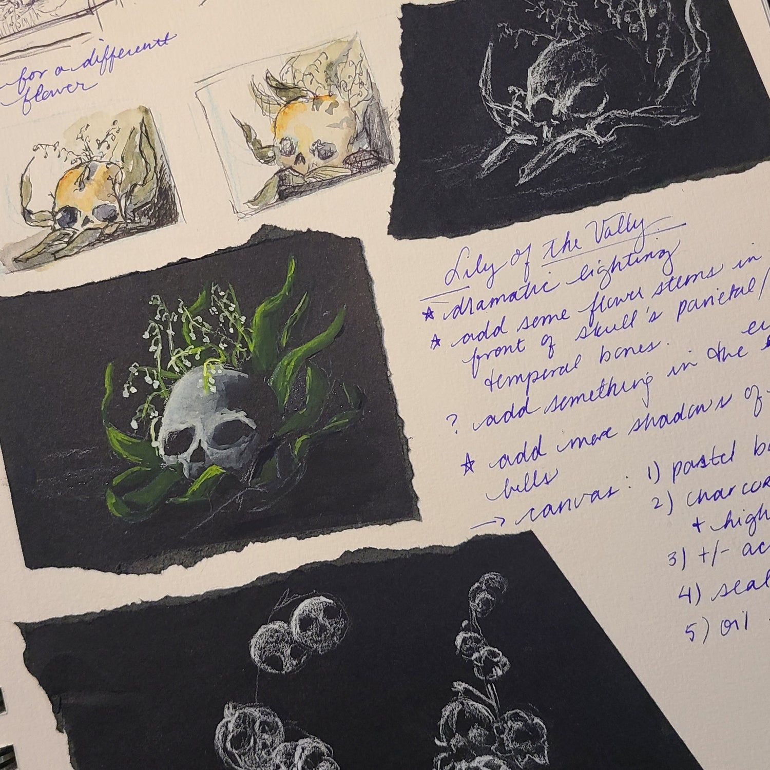 Memento Mori, Memento Vivere : Remember you must die, so remember to live. Life and death are intertwined, just as shadows and light are; this concept is infused in my life and work, challenging my own fears of mortality and meeting death with a life un-lived. This saying reminds me to experience life amidst pain and fear, staying present and connected. We are not alone.